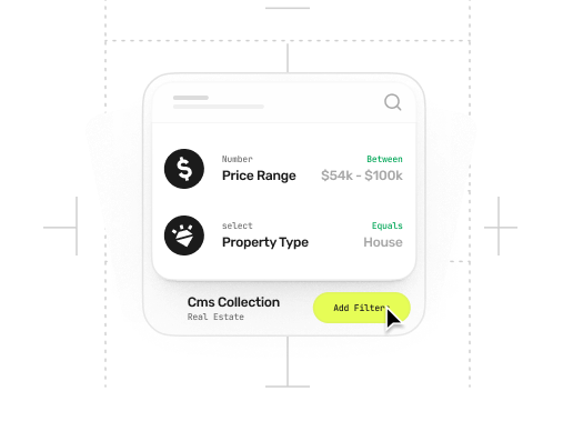 Map CMS fields to filter typesβdropdowns, sliders, checkboxes, search. All in properties panel.